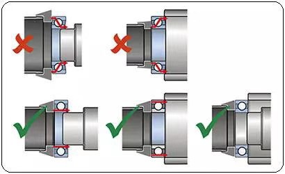 軸承安裝裝反了,不僅軸承工作不正常,且各配合面會遭到嚴重磨損。由于軸圈與座圈和區別不很明顯,裝配中應格外小心,不能裝反。